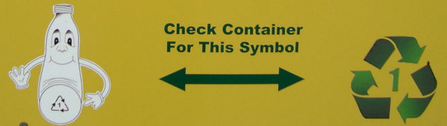 Look on the bottom of plastic containers for the number located in the center of the recycling symbol. We are able to recycle #1 and #2 plastic bottles. The symbols will look like this: